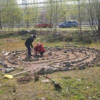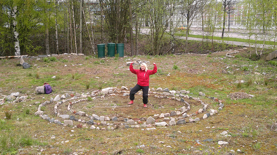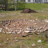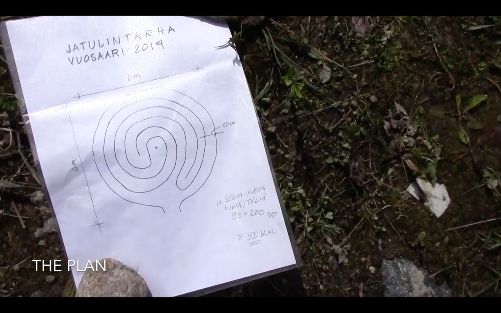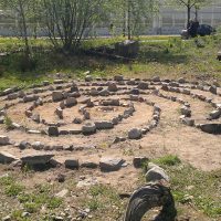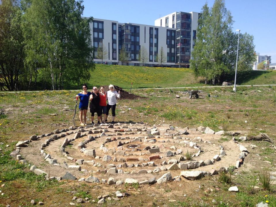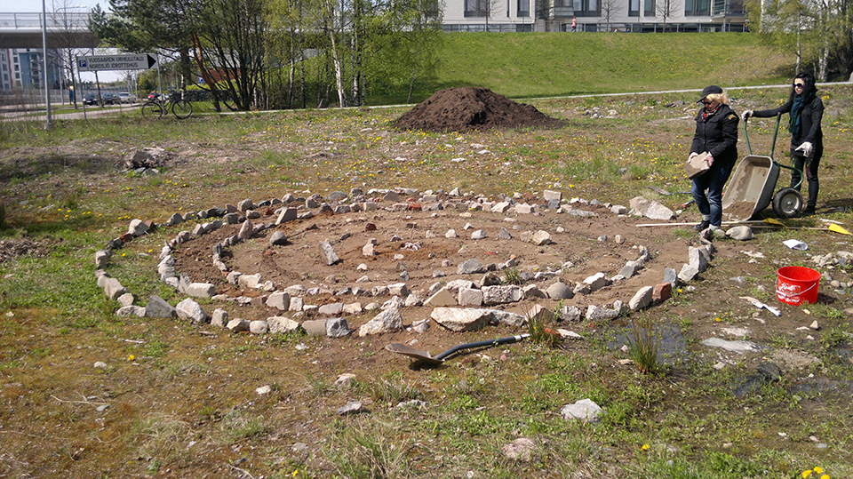 Jatulintarha Stone Labyrinth was a team work by Melina Alexina, Minka Heino, Sini Helander, and myself for Community Art MAA, a project & course tutored by artist Jon Irigoyen at Art School MAA in Spring 2014. It was carried out in cooperation with Pajupalatsi (Willow Palace), a communal environmental art project by artists Petra Martinez and Antti Annanpalo, on an empty site next to the metro station in Vuosaari, Helsinki.