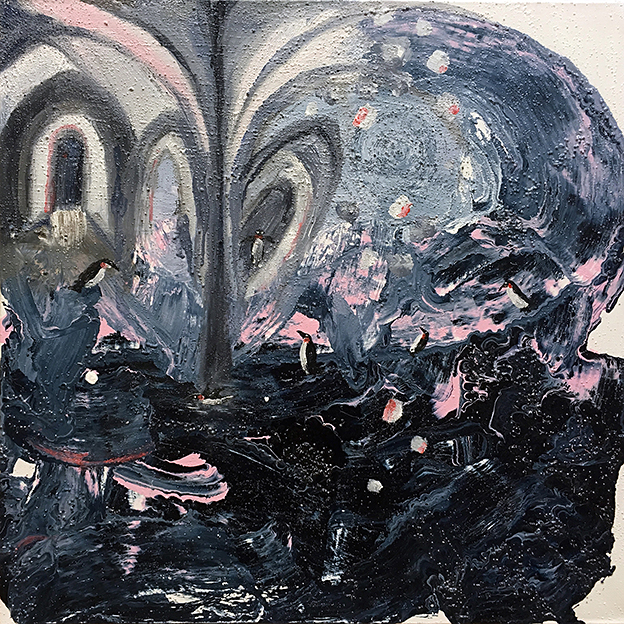 Taidekeskus Ahjossa esillä ollut näyttelyni on alitajunnasta kumpuava synteesi muistamisesta, tuntemattoman kohtaamisesta sekä kaipuusta johonkin, mitä ei koskaan ollut eikä ehkä koskaan tule. Se jatkaa työskentelyssäni ulottuvuuksien ja ulottumattomuuksien tematiikkaa. Lähestyn maalaamista aluksi varsin suoraviivaisesti, mutta työn edetessä jään näpertämään yksityiskohtia. Uurran tietä mielen sisään, toisiin maailmoihin.